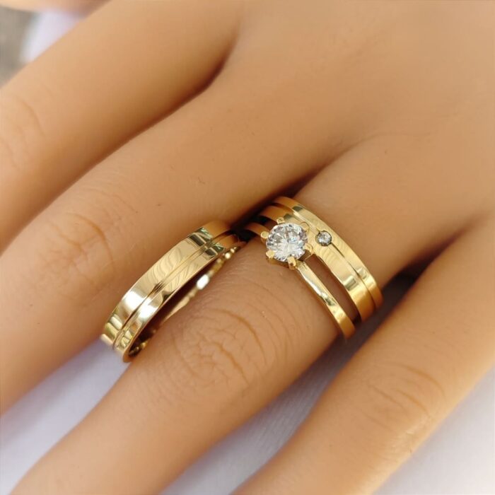 Alianças 4mm Mod. R1 com pedra + Anel Solitário Princesa