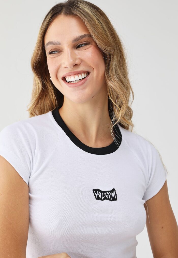 Camiseta Cropped Volcom Slim Logo BrancaModelagem: SlimDecote: RedondoManga: CurtaEstilo: ModernoMedidas do Modelo: Altura: 1,75m/ Busto: 90cm/ Cintura: 69cm/ Quadril: 98cm.Modelo Veste: pCLÁSSICA E ATEMPORAL: As camisetas São itens indispensáveis em um guarda-roupa moderno! Elas São extremamente curingas, combinam com diversas composiéées e São perfeitas para dar aquele toque urbano e descolado com personalidade! Aposte com peças leves para um look esportivo ou peças mais estruturadas para um visual que vai desde o trabalho ao happy hour!A Volcom é uma marca de lifestyle, skate, surf e snowboarding, fundada em 1991. A marca cria coleéées de roupas e acessérios para todas as ocasiões, incorporando combinaéées distintas de moda, funcionalidade e desempenho para o esporte.