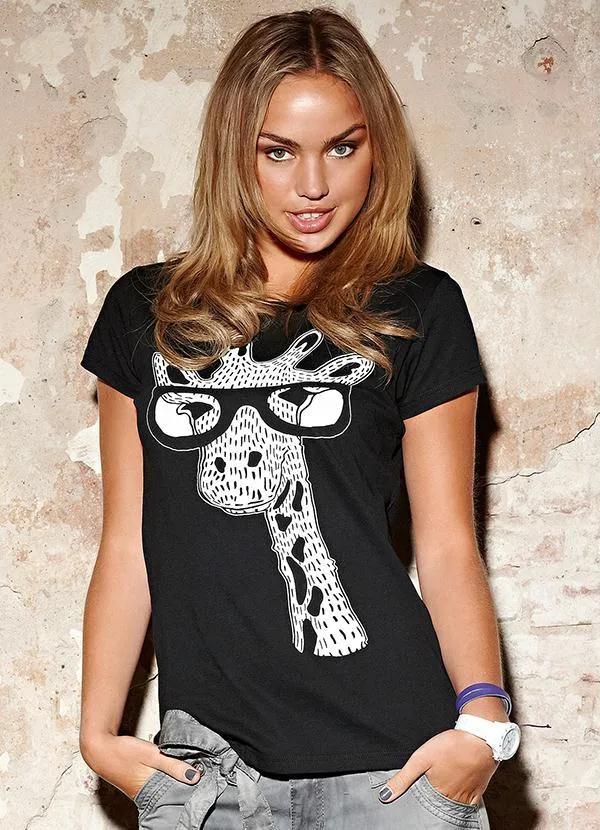 Blusa em malha de algodão. Possui decote redondo e mangas curtas. Estampa frontal. Modelagem tradicional.