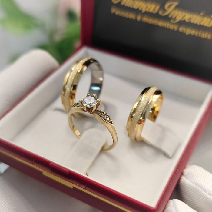 (COMBO) Par de alianças 6mm mod. A4 abaulada+ anel Rainha