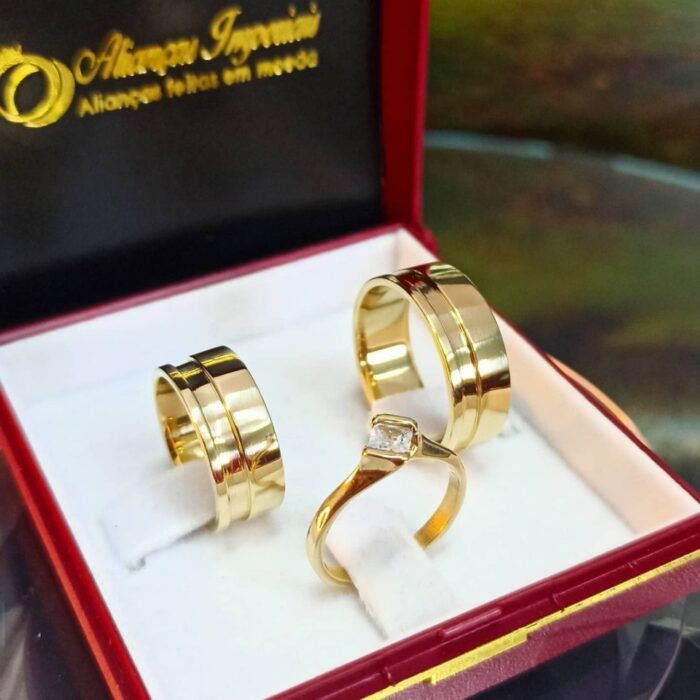(COMBO) Par de alianças 8mm Mod. R8 + anel Mod. Plaza