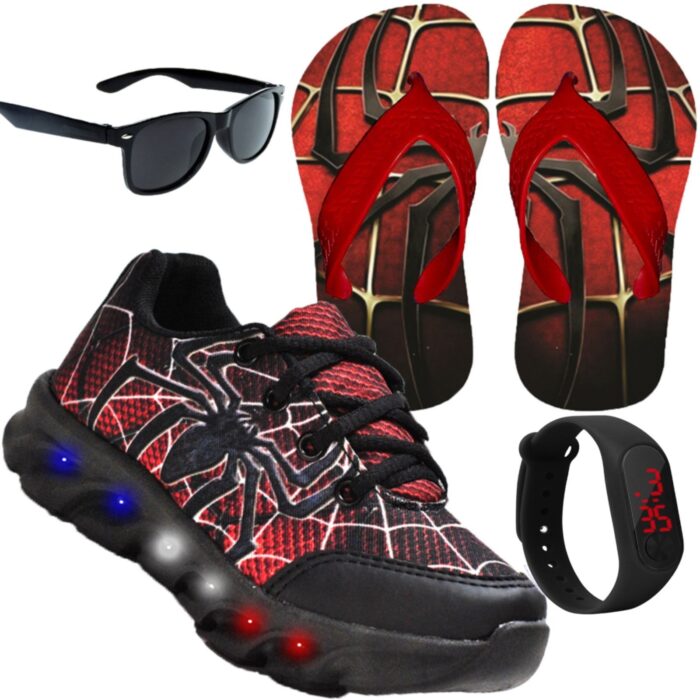 Infantil – Tenis Masculino de Led Aranha Calce Facil Original + Chinelo + Brindes