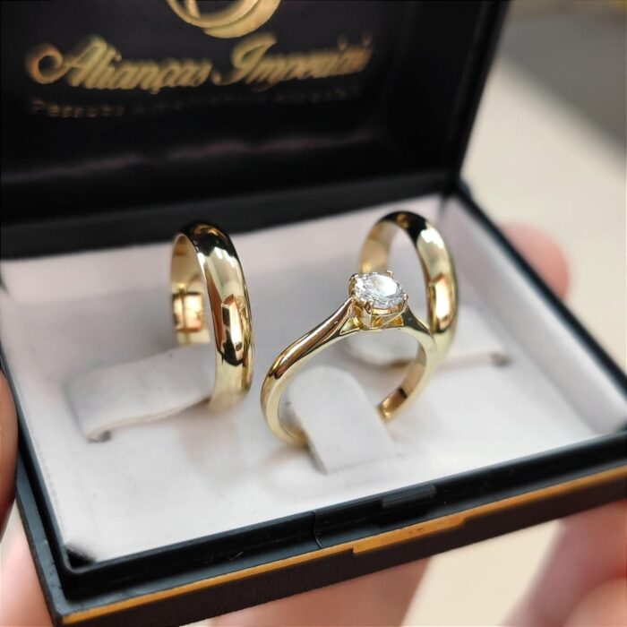 Kit Promocional ( Par de Alianças Abauladas 4mm + Anel Solitário Condessa )