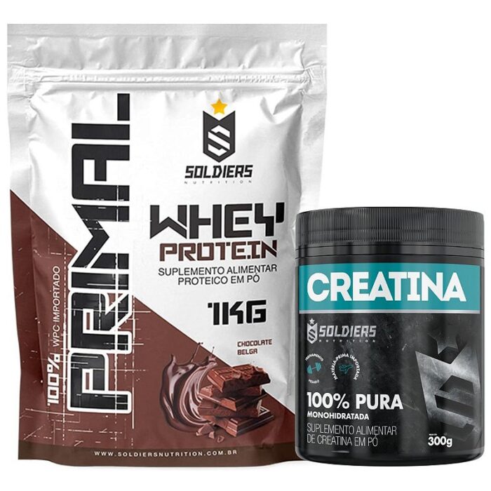 Kit: Whey Protein Primal 1Kg 100% Importado + Creatina Monohidratada Pote 300g – Soldiers Nutrition