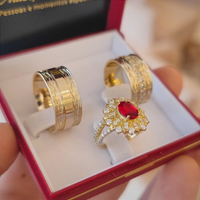 Par Alianças 8mm Com 24 Pedras mod. Ômega + Anel Aurora