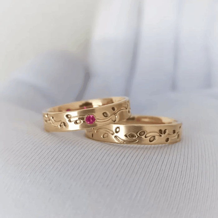 Par Alianças de Moedas Antigas 4mm Mod. Cravo e Rosa