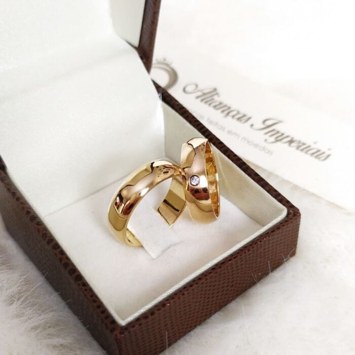 Par Alianças de Moedas Antigas 6mm Arredondadas com zirconia