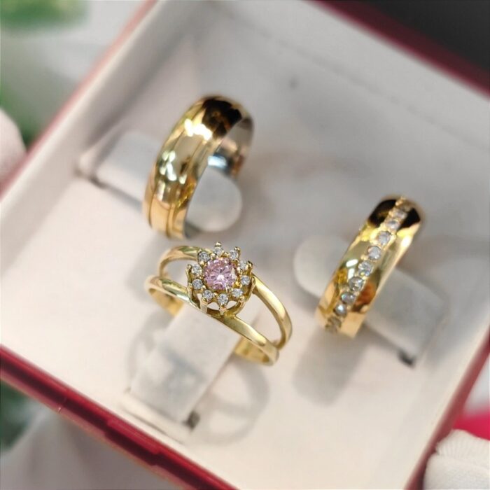 Par Alianças de Moedas Antigas 6mm com 12 pedras mod.PD15 + Anel F2
