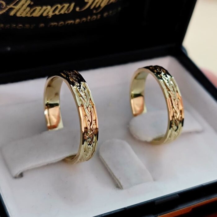 Par Alianças de Moedas Antigas Trabalhadas 4mm Mod. Lilo