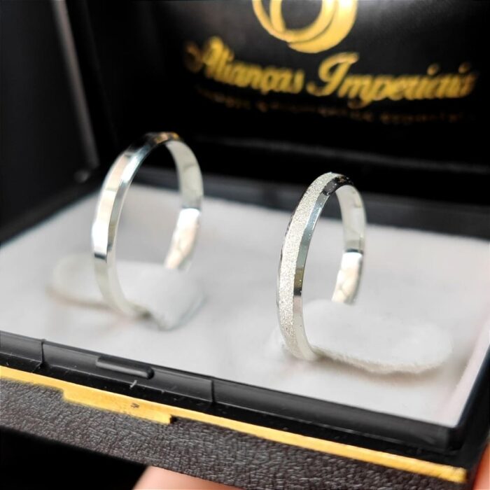 Par de Alianças 3mm Prata 950 Modelo Italiana Fem. Diamantada