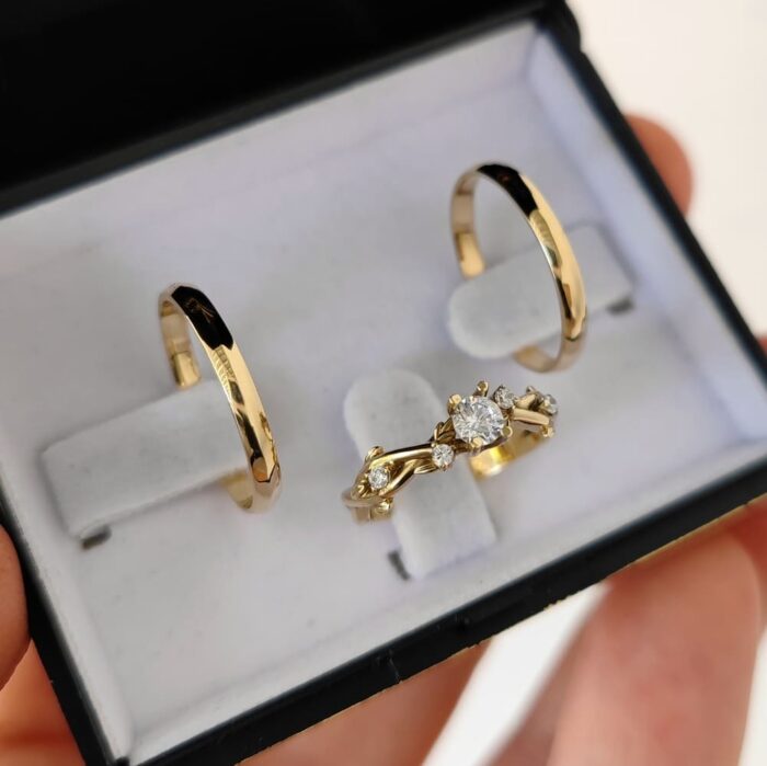 Par de Alianças Mod. Abaulada 2mm + Anel Versos