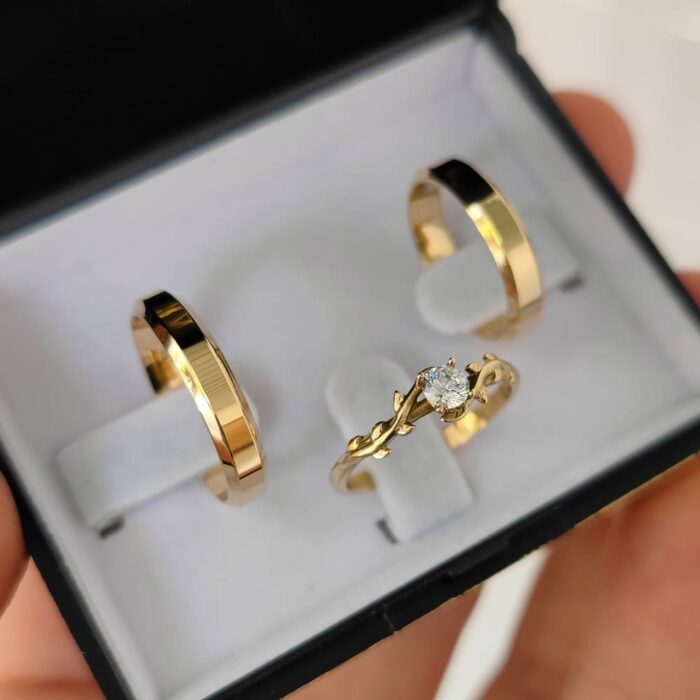 Par de Alianças Mod. Italiana 4mm + Anel Poesia