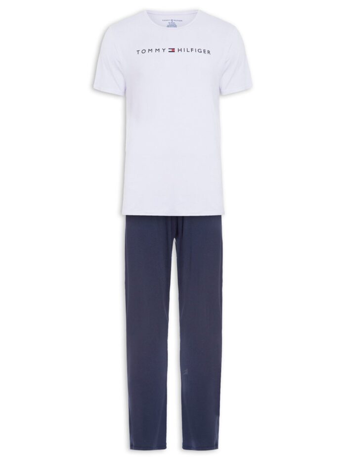Pijama Tommy Hilfiger Masculino Manga Curta Calça Essentials Set Branco/Marinho